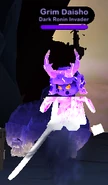 Grim Daisho is a prominentDark Ronin Invader found on Crux Prime. He is much harder to defeat than normal Dark Ronin invader, but does drop more loot. He can be found in most places on Crux Prime, (other than the Maelstrom Quarry) but Aura Mar is his most likely location. His health meter holds around 60.
