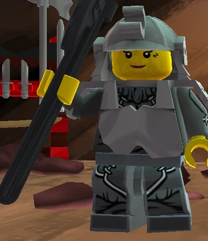 Hari Howzen is a Ninjago Monastery Guard in the Cave of Ancient Ways just beyond the Ninjago Storeroom in the Ninjago Monastery. She was a villager in the Ninjago Village, but took up the post in the caves so she would be safe from Skeletons, but was disappointed to find the caves even more scary and unsafe.