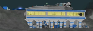 The Command Center is the primary business center and expansive underground base of the MoonBase, accessed through Heavy Lift Elevator Doors. All mining tasks are directed from the Command Center's control center, which is accessed through an Interior Airlock Door. There are parking and maintenance areas below the control center and the primary landing platform above the control center. Following the Piratron raid, the control center can also be accessed through a damaged wall in the side of the Command Center, as the Interior Airlock Door is currently under repair by 2by3.