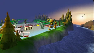 Nimbus Isle is the medium Nimbus Stationproperty. It was released in the May patch in 2011, and the launchpad is by the water's edge in Brick Annex, directly next to Rad Eccles. Its launchpad is, in fact, in the same spot the Frostburgh launchpad used to be at. The Property Guard is Bud Nippit. In a message boards post, Imaginatrix said "The Nimbus Isle Prop is [about] the same size as the Avant Grove Property. Though the layout is a bit different - it's square for once" meaning more usable building space as opposed to some of the other, rounder, properties, although the height limit on Nimbus Isle is significantly lower compared to Avant Grove.