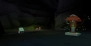 The Ninjago Caves are divided into three main areas. The Cave of Ancient Ways is the central cave and contains the Ice Shrine, the Cave of Black Echoes holds the Fire Shrine and Earth Shrine, and the Cave of White Whispers contains the Lightning Shrine. The only way to enter the cave is to pass through the Ninjago Storeroom, which has an entrance to the Cave of Ancient Ways. A small, unconnected cave can by accessed by using a Earth Spinjitzu Lantern in the Monastery Courtyard, which contains a launchpad to Nexus Tower. Players can also land in this small cave by wearing Ninjago headgear while blasting off to the world.